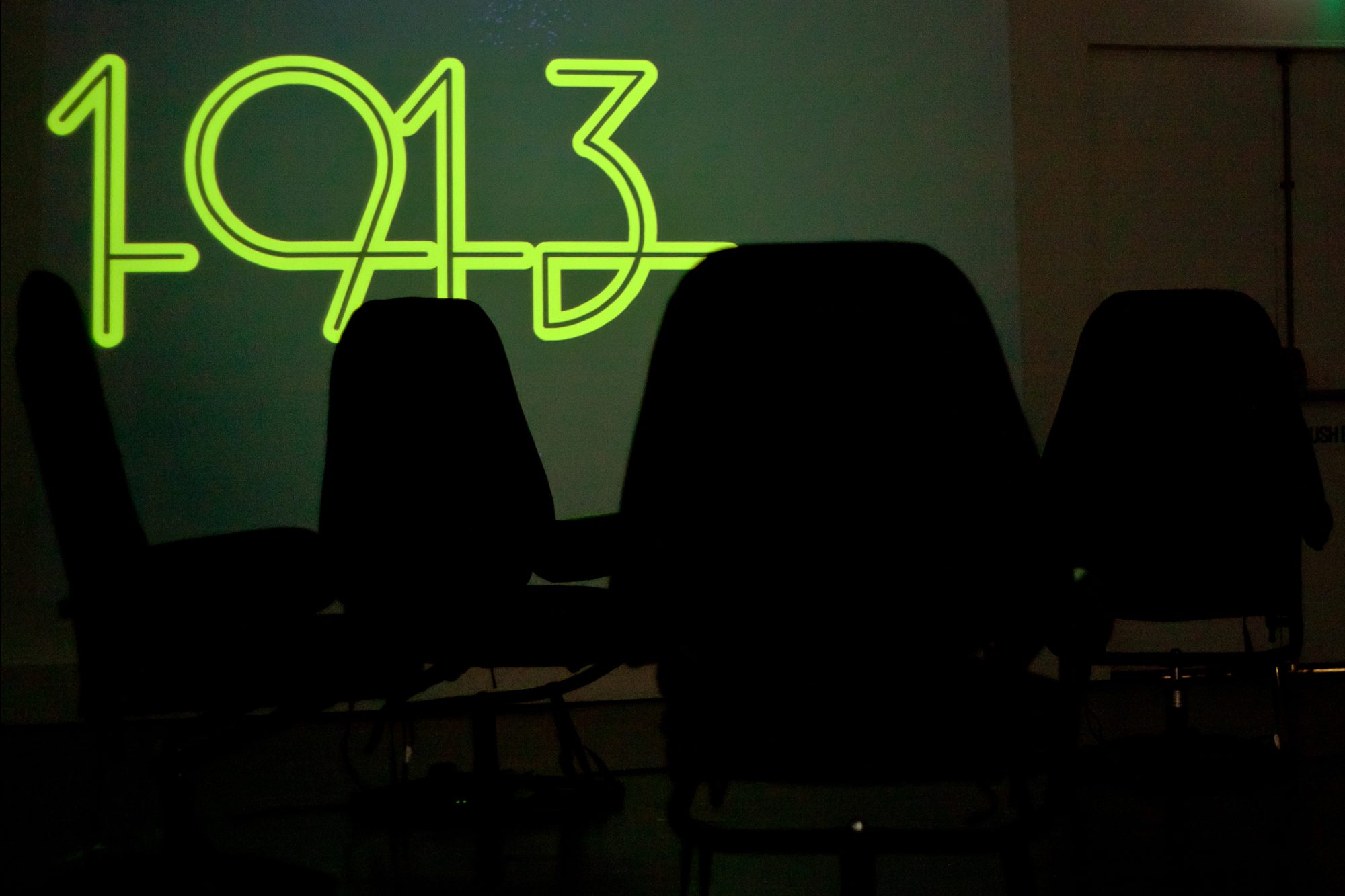 Each chair represents a key service or industry: Health, Railways, Gas, Electricity, Telecoms and Post. They are illuminated by a neon-style display, which methodically scrolls through the dates of the last century (from 1900 – 2011), over the course of quarter of an hour. The colour of the neon changes depending on which political party is in power at that time, from blue to yellow to red and so on.