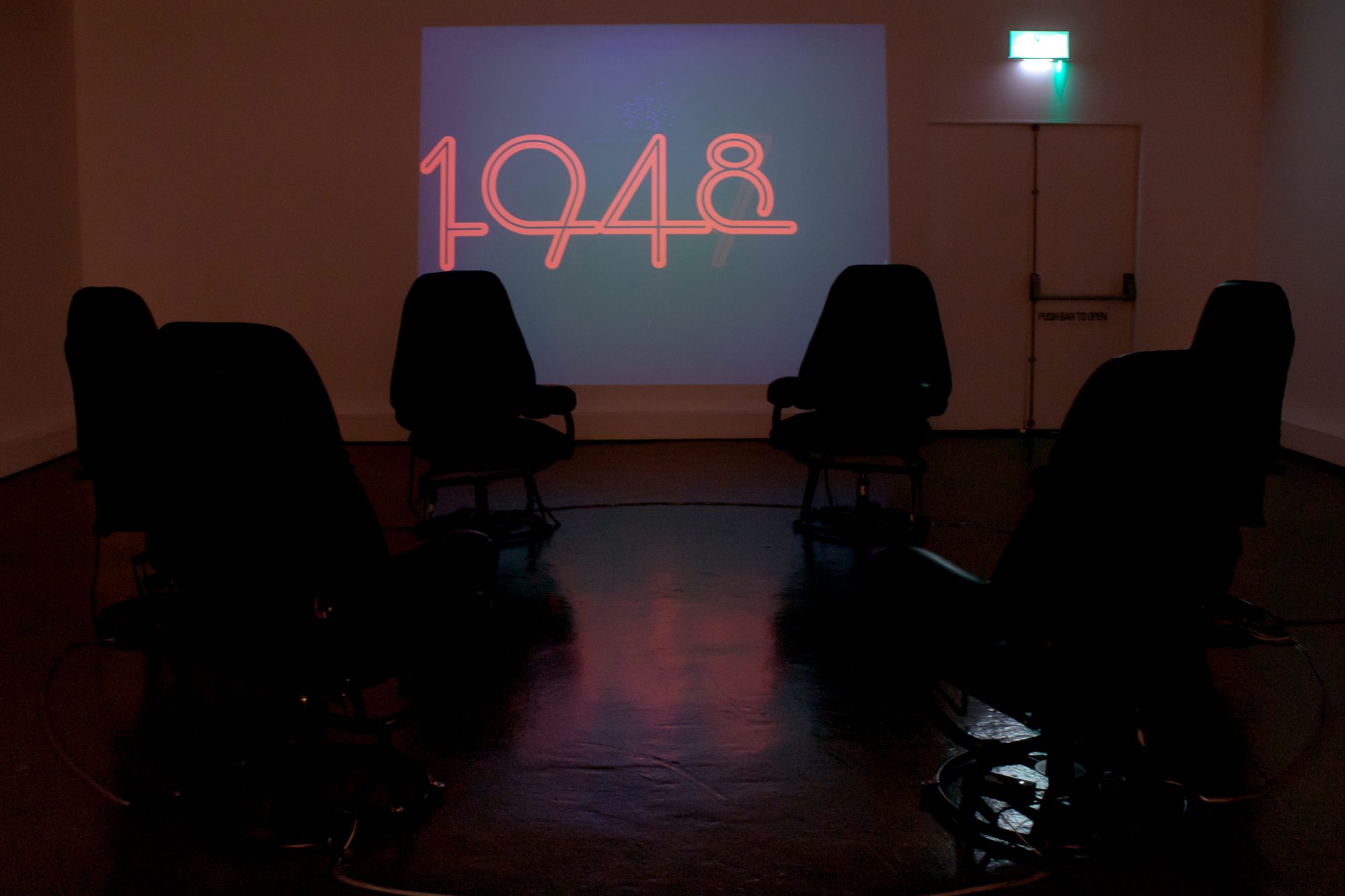 During this 15-minute cycle, the massage chairs automatically switch on at the dates in which their corresponding service or industry was taken into public ownership and switch off again at the date when/if they were privatised. Visitors are free to relax on the chairs at any point and experience this history viscerally, as well as conversing with others who may be sitting opposite.