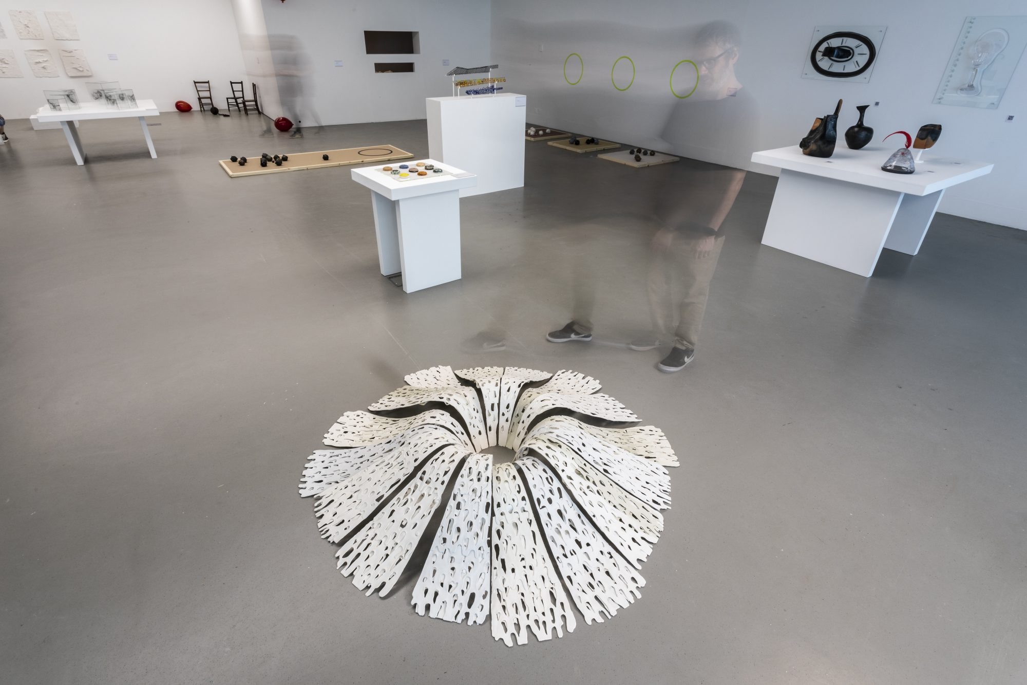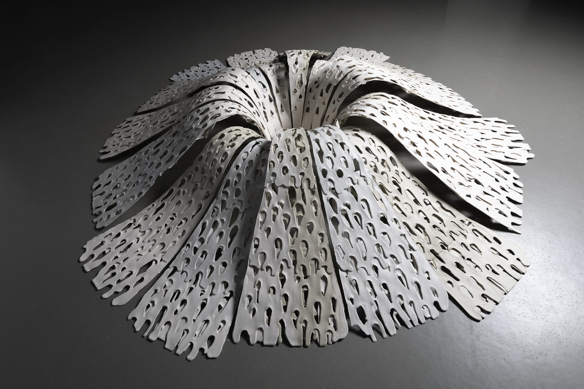 Phase Transition is a large floor standing porcelain ring made up of 16 individual pieces, when installed nearly 2m diameter.